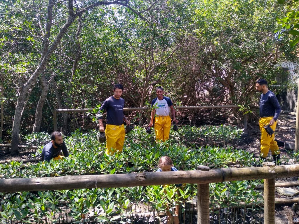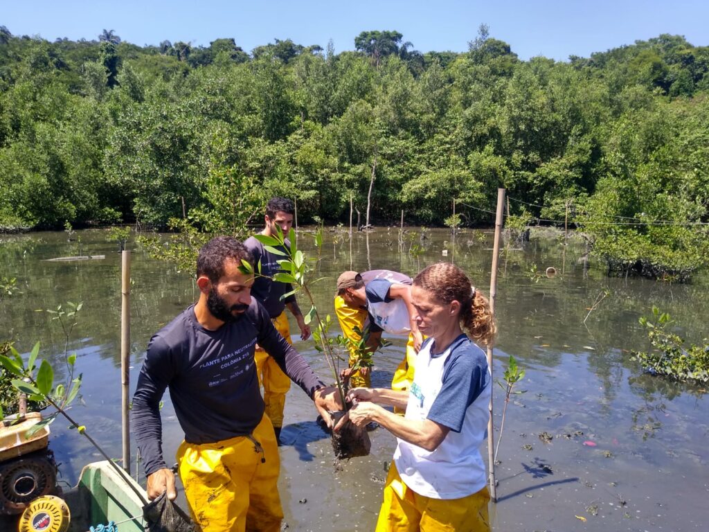 As emissões de GEE não evitadas por nossos parceiros são compensadas por plantios comunitários e/ou corporativos, por meio de eventos climáticos. Além disso, realizamos reflorestamento em unidades de conservação com mudas nativas do bioma Mata Atlântica : floresta atlântica, manguezal, restinga e campos de altitude, além de incentivarmos a arborização urbana.